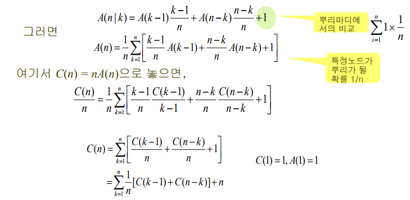 평균의 경우, 복잡도 A(n) = lg(lg n)
