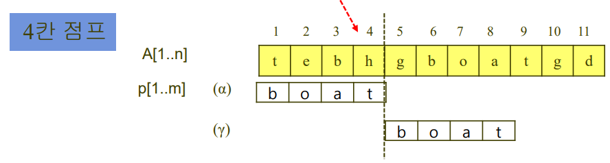 ✓ Boyer-Moore 방법은 이 방법보다 정교한 jump 판단 방식채용