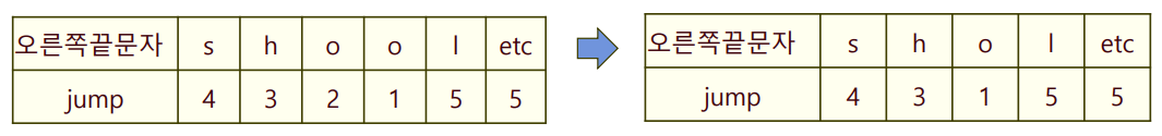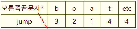 ✓ 같은 문자가 있을 경우는 작은 jump 값으로 설정