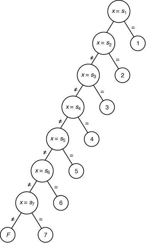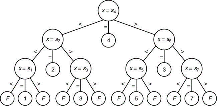 이진 검색과 순차 검색의 결정 트리를 비교하면서 이를 살펴보자.