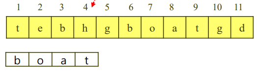 i= i + jump[A[i+m-1]]; //그렇지 않다면 표에서 오른쪽 끝 문자에 해당하는 점프 횟수만큼 찾아서 점프