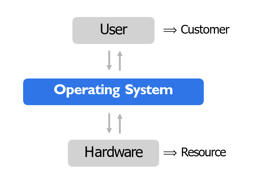 OS는 컴퓨터의 유저와 하드웨어 사이에서 중계역할을 한다,