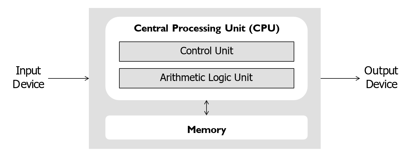 CPU와 메모리가 나눠져있는 구조. CPU가 메모리로부터 instruction들을 불러와서 하나씩 처리해줌.