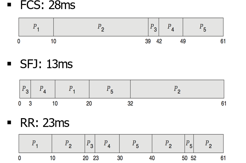 ㆍtime quantum : 프로세스가 한 번 스케쥴링 되었을 때 CPU를 쓸 수 있는 최대 시간.