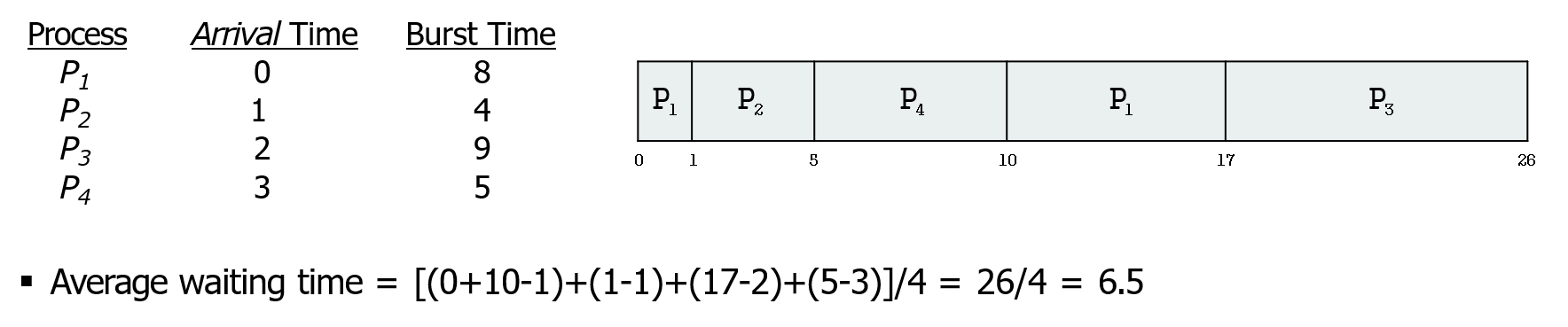 주의) 이전에 실행 끝난 시간이나, arrival time을 고려해서 waiting time을 계산하기!!