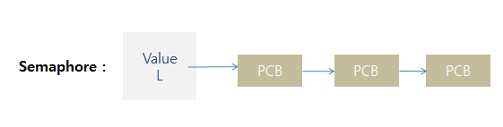 - 만약 value < 0이라 세마포어를 대기해야 하는 경우, 세마포어의 linked list에 연결한 후, block한다.
