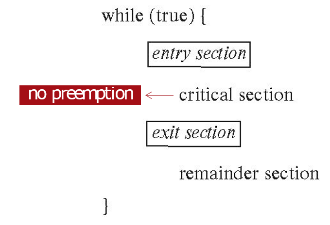 그리고 citical section에 들어가면 스스로 나올 때까지 CPU를 혼자 독점할 수 있다.