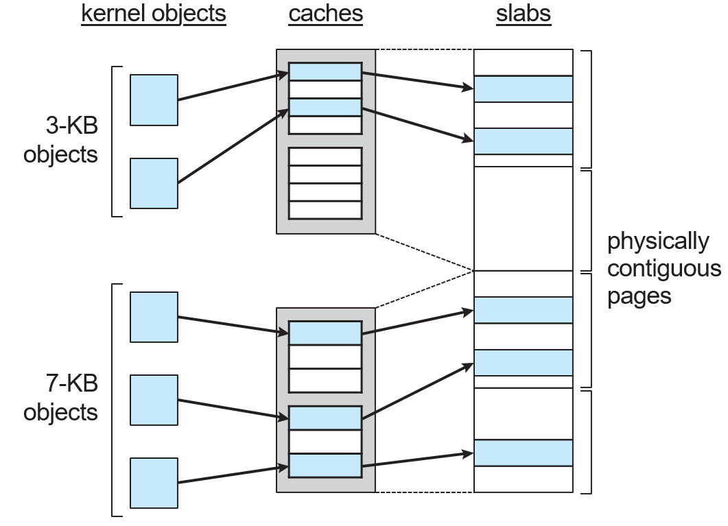 ex) 프로세스가 만들어지면 이에 해당하는 PCB도 만들어줘야 하고, 그러면 새로운 메모리가 또 필요하게 됨. - 어떤 커널 메모리는 무조건 contiguous하게 저장되어야 하는 경우가 있다!