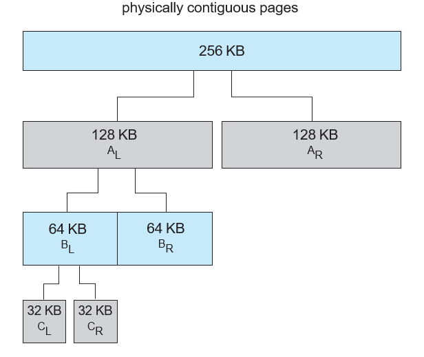 256 KB 의 메모리 청크(한 덩이)가 있는데, 21 KB 메모리를 요청받았다고 하자.