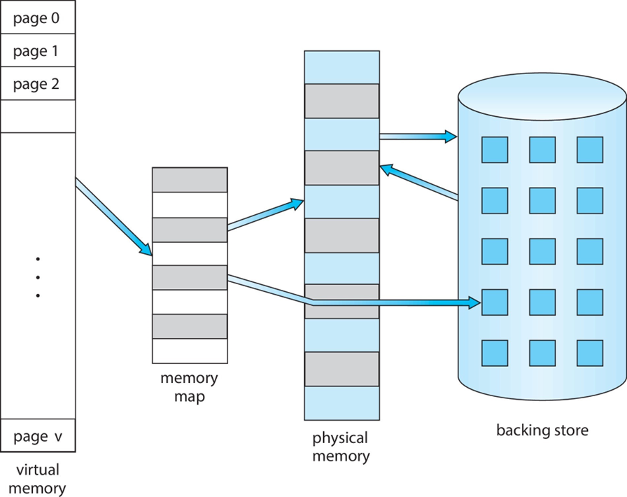 가상 메모리 virtual memory는 logical 메모리를 실제 physical 메모리와 구분하는 것으로 시작함.