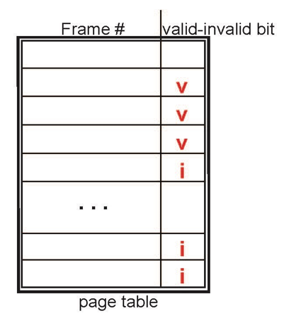 - valid-invalid bit로 메모리에 존재하는지 아닌지 구분