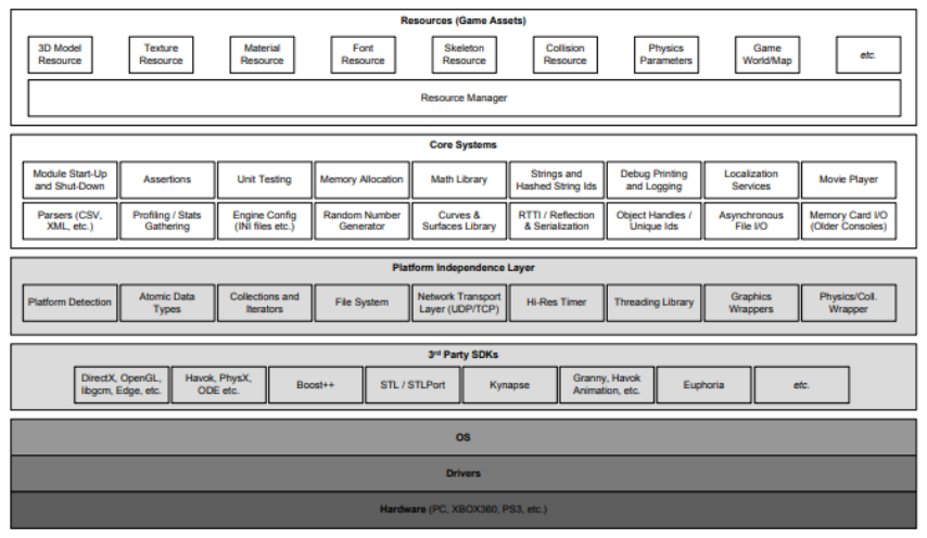 다른 컴퓨터 시스템들처럼, 게임엔진도 내부적으로 "계층적"으로 구성되어 있음