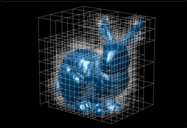 그러면 뭔가를 찾을 때 이 큐브(구분된 공간) 단위로 순회해서 찾는 것임. (원래는 전체 vertex 다 순회)