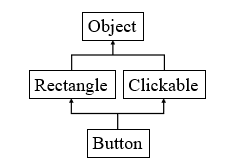 object의 멤버 int a가 있는데, object를 상속한 rectangle과 clickable도 각각 int a를 재정의 할 수 있음. 이때 이 둘을 상속한 button에서 a를 갖고오려면, 어느 클래스의 a를 갖고와야 할 지 모호함. (컴파일 에러)