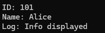 User user(101, "Alice");