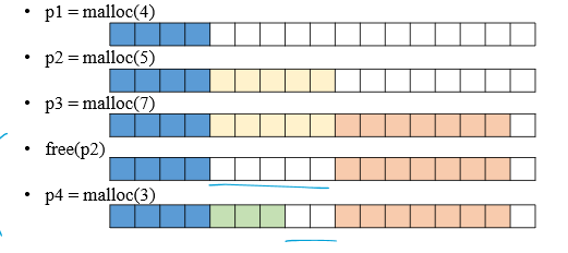 맨 위를 가리키는 포인터를 만들고, 10바이트를 할당할거면 이 포인터를 10바이트만큼 내려줌