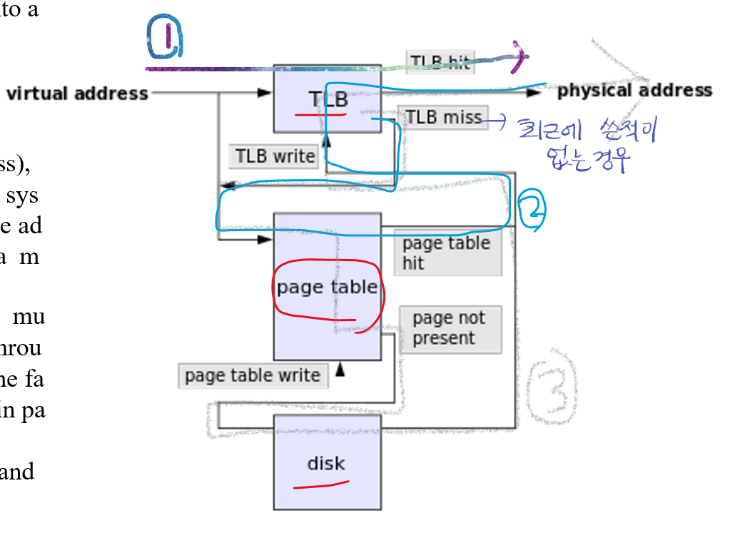 그 다음에 찾앗어! 그러면 TLB에다가 데이터를 써주고, 그 다음에 physical로 내려감.
