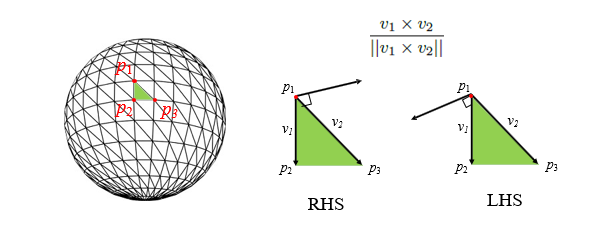※ normal vector는 vertex들의 저장 순서(CW or CCW; 어느 좌표계를 쓰는지)에 따라 다른 방향으로 나올 수 있음.