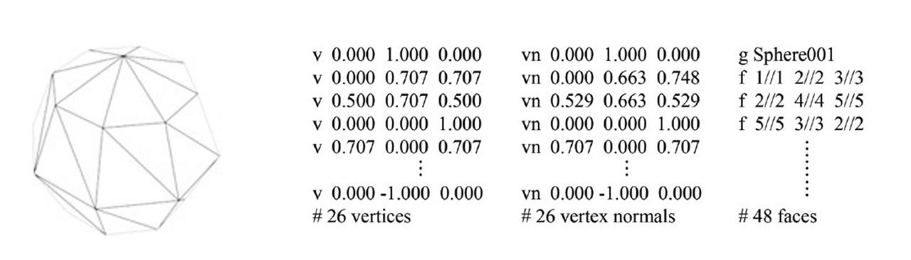 Polygon mesh들의 관련 데이터들은 파일(.obj 등)에 저장되어 런타임 3D 애플리케이션으로 넘어감.