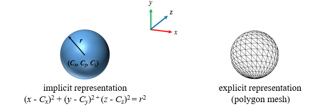 - implicit(함축적인) way : 도형을 수학적(수식)으로 표현하는 방법