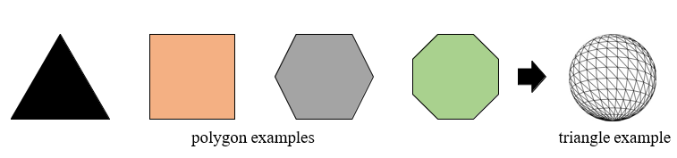 - 삼각형(triangle polygon)은 연산이 빠르지만, 빛 계산이 어려울 수 있음(→ 게임에서 주로 사용)