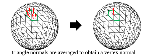 (한 vertex에서 바로 normal을 구하긴 어려우므로) 그 vertex를 공유하는 주변 triangle 들의 normal을 구해서 평균냄