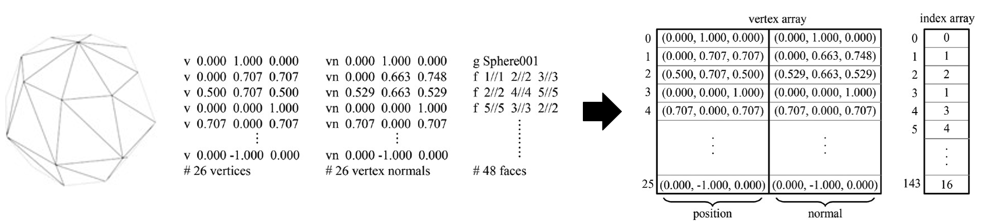 파일에 저장된 데이터는 내 애플리케이션에서 vertex, index array로 import할 수 있음.