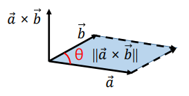 기하학적으로, || a x b ||는 ||a||||b||sinθ 이다. 아래 평행사변형의 면적을 의미함.