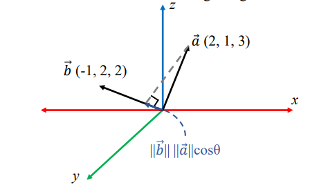 기하학적으로, aㆍb 는 ||a||||b||cosθ 이다.