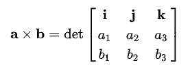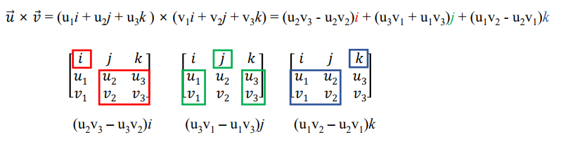u x v는 (u ∧ v 라고도 쓴다!) 행렬식(Determinant)으로 계산한다.
