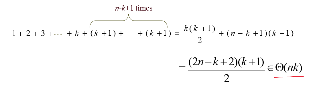 이므로 시간복잡도는 Θ(nk) 이다. (k ≤ n 이므로 k²항 대신 nk항만 보면 됨) <-??