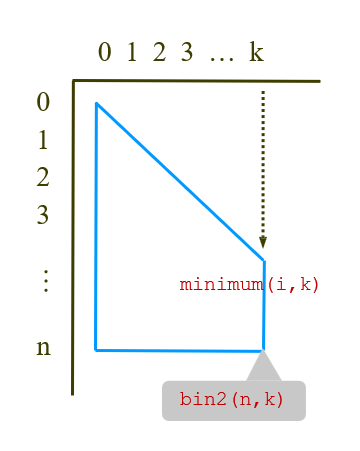 for(j=0; j <= minimum(i,k); j++) //i와 k중 더 작은 값까지만 계산해줌