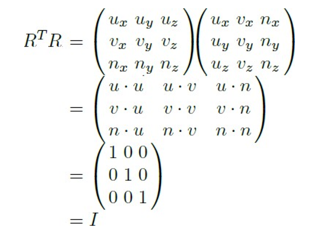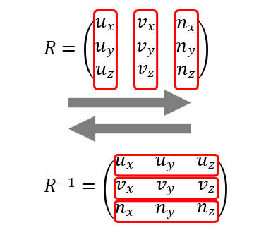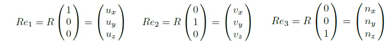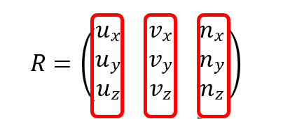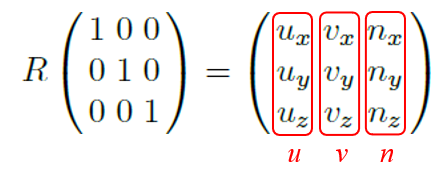 즉! 회전한 결과값{u, v, n}을 알고 있을 때, 이 회전을 만든 Rotation Matrix R은 다음과 같이 바로 구할 수 있다.