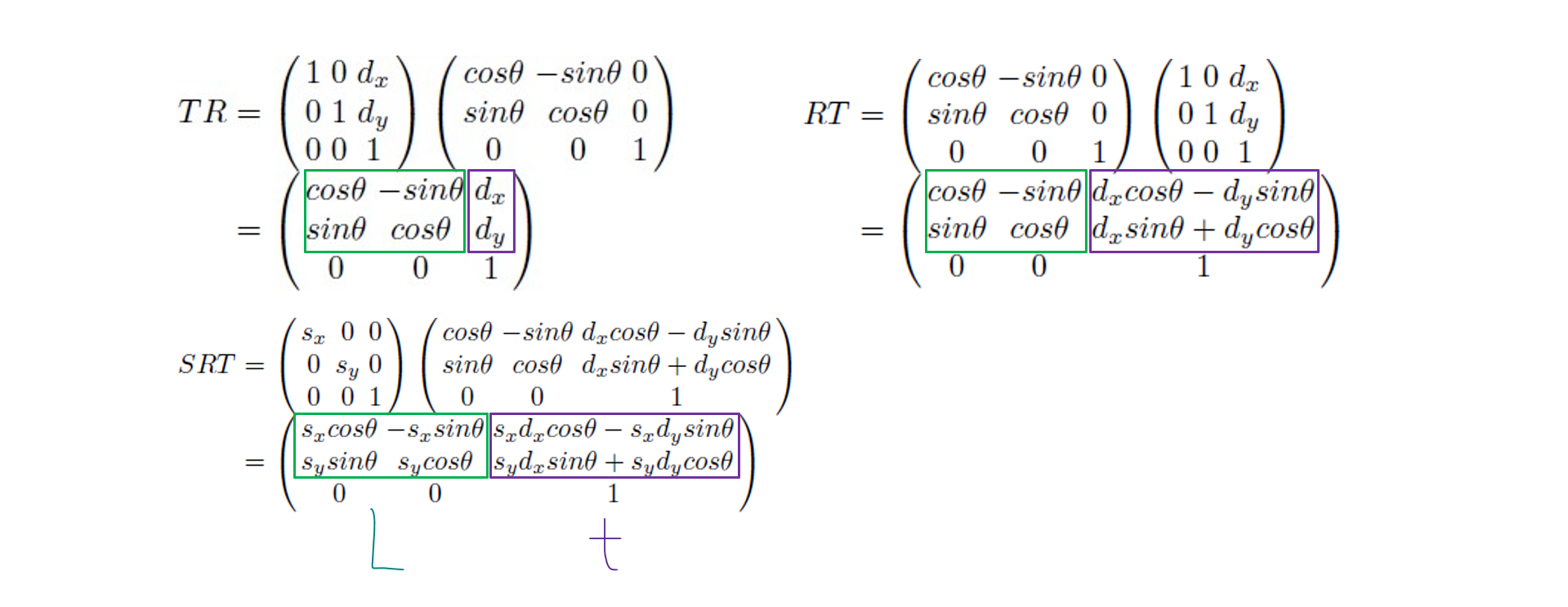 Rotation하고나서 Translation 할거라면, 변환 행렬 TR을 먼저 서로 곱한 후 좌표에 곱해주자.