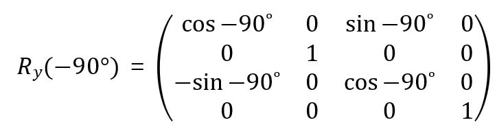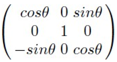 ← Ry ; 주의! y축 회전은 회전 행렬에서 - 위치가 바뀜