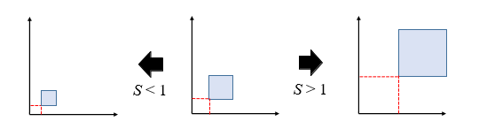 각 Vertex 좌표에 곱하는 S가 1보다 크면 커지고, 1보다 작으면 작아짐