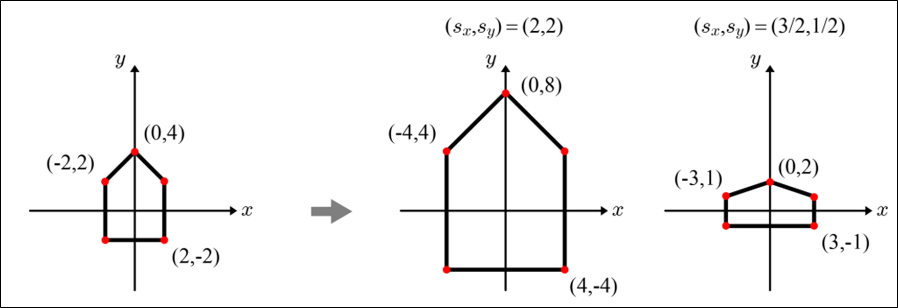 각 Vertex 좌표(coordinate)에 Scaling Matrix S를 곱해준다.