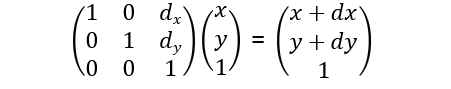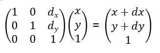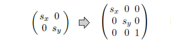 2D 좌표 (x, y)가 주어졌을 때, 이를 위와같이 동차 좌표인 3D 벡터 (x, y, 1)로 변환해서 행렬 곱셈 가능.