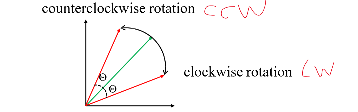 기본적으로는 CCW 방향이 양수. (양수 θ가 주어지면 CCW 방향으로 돌림)