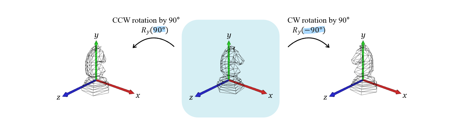 3D에서도, default로는 positive angle이 CCW 방향을, negative angle이 CW 방향을 의미한다.