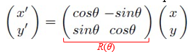 각 Vertex 좌표(coordinate)에 θ만큼 회전하도록 하는 Rotation Matrix R(θ)를 곱해준다.