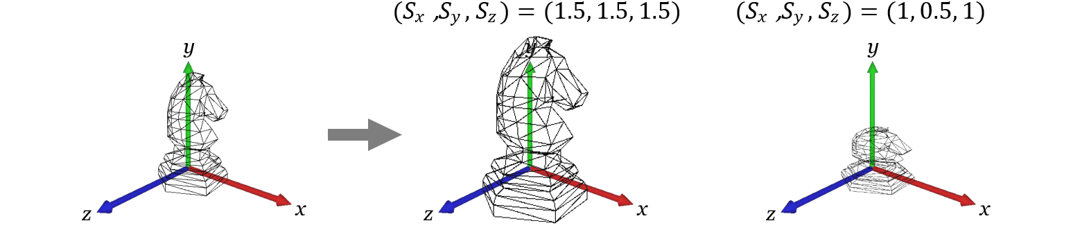 세 개의 Scaling factor Sx, Sy, Sz를 사용한다.