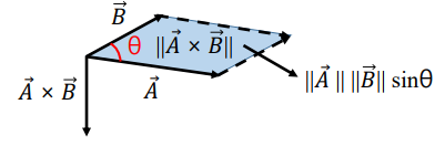 Vector a와 b의 Crossproduct의 magnitude로 구해도 동일한 결과 나옴