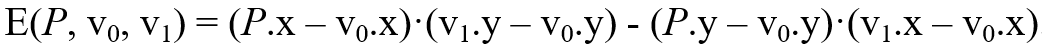 그리고 전체 삼각형의 넓이는 0.5 ∗ E(v2, v0, v1)가 됨.
