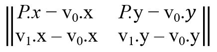 (그림에서 v0 기준, P-v0이랑 v1-v0 외적)