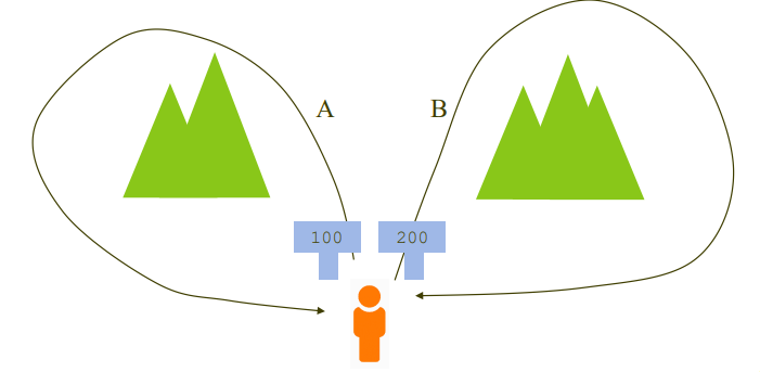 또 만약 실제 거리가 80인 C 코스를 알고있다면, A와 B 코스를 탐사할 필요는 없다.