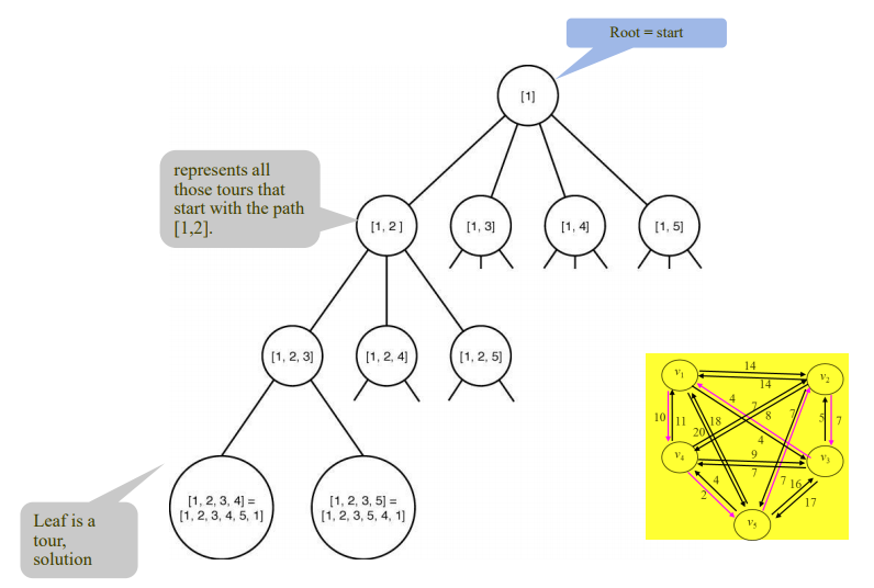 하나의 노드에서 출발하여 다른 노드들을 각각 한번씩만 방문하고, 다시 출발노드로 돌아오는 가장 짧은 일주여행경로(tour)를 결정하는 문제