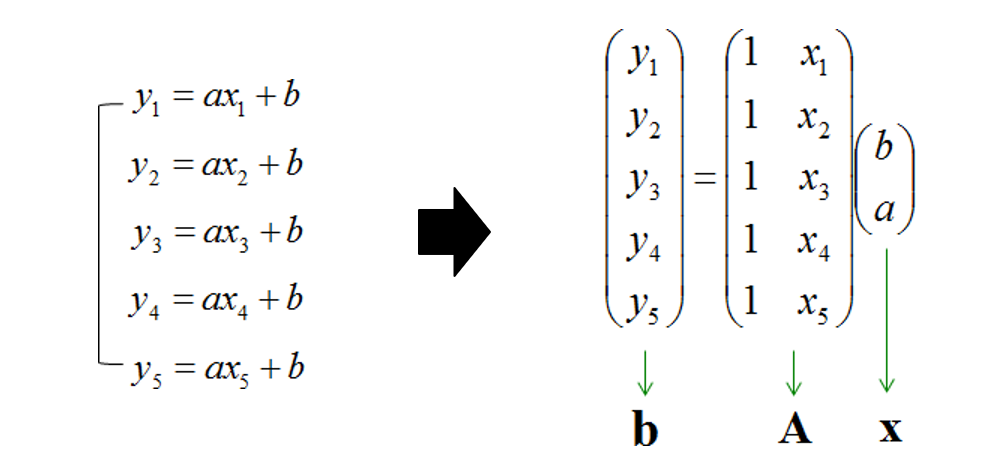 그림처럼 방정식의 개수가 미지수의 개수보다 많은 (overdetermined) 경우의 연립 방정식를 풀기 위한 방법을 의미한다.