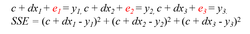 (x1, y1), (x2, y2), (x3, y3)에서 관찰한 결과를 다음과 같이 표현할 수 있음.