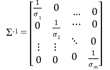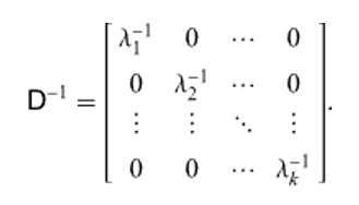 이때 D inverse는 다음과 같은 간단한 대각 행렬 형태입니다.